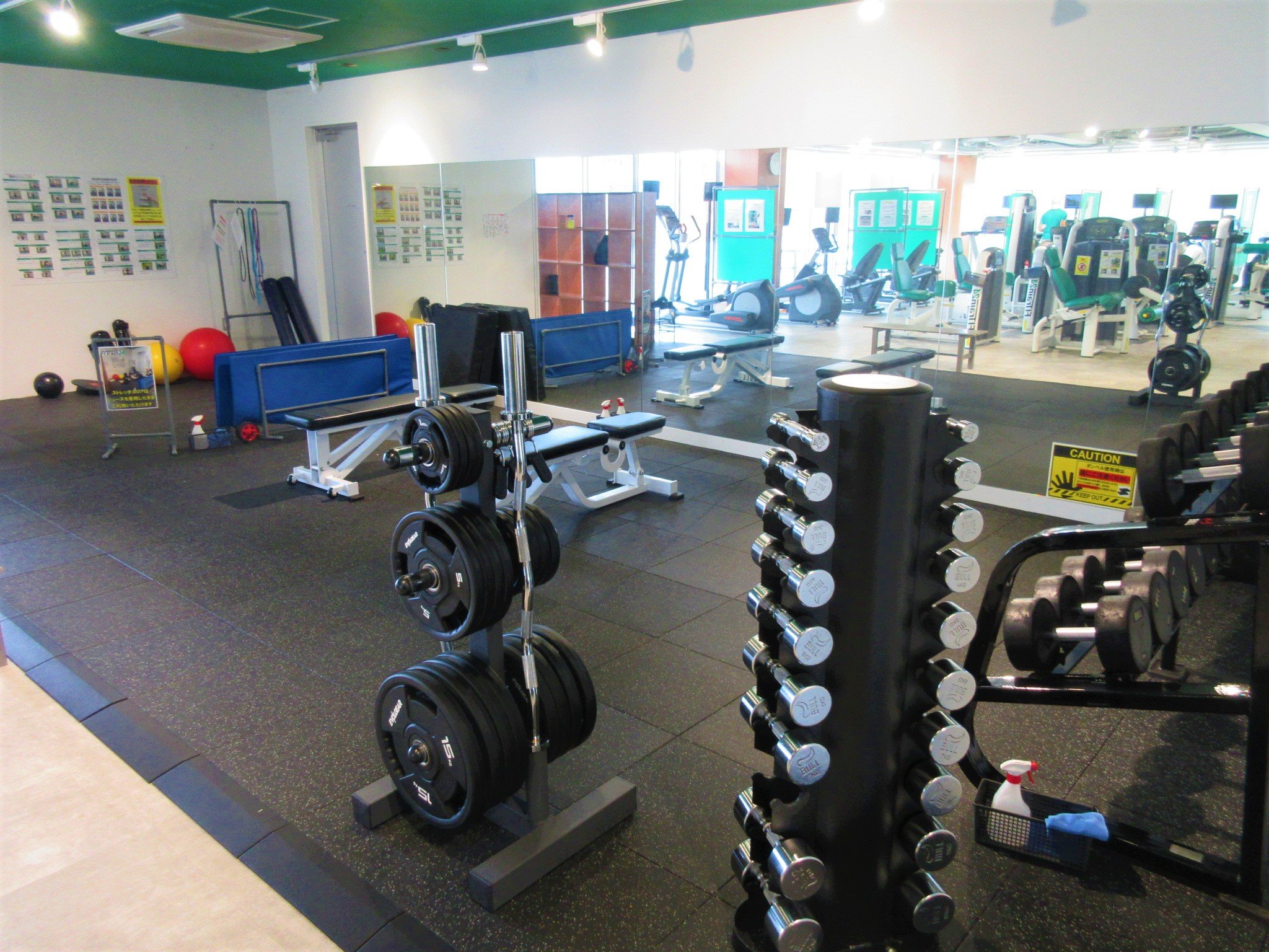 有酸素マシン、ストレングスマシン、フリーウエイトエリア、ストレッチエリア