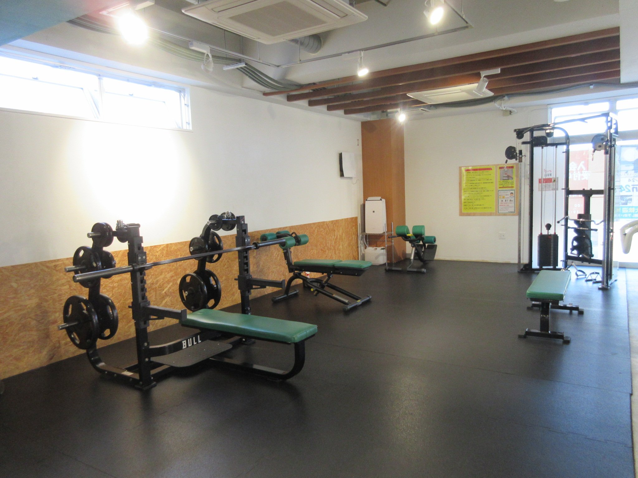 バーベル・ケーブルマシンなどをそろえております。